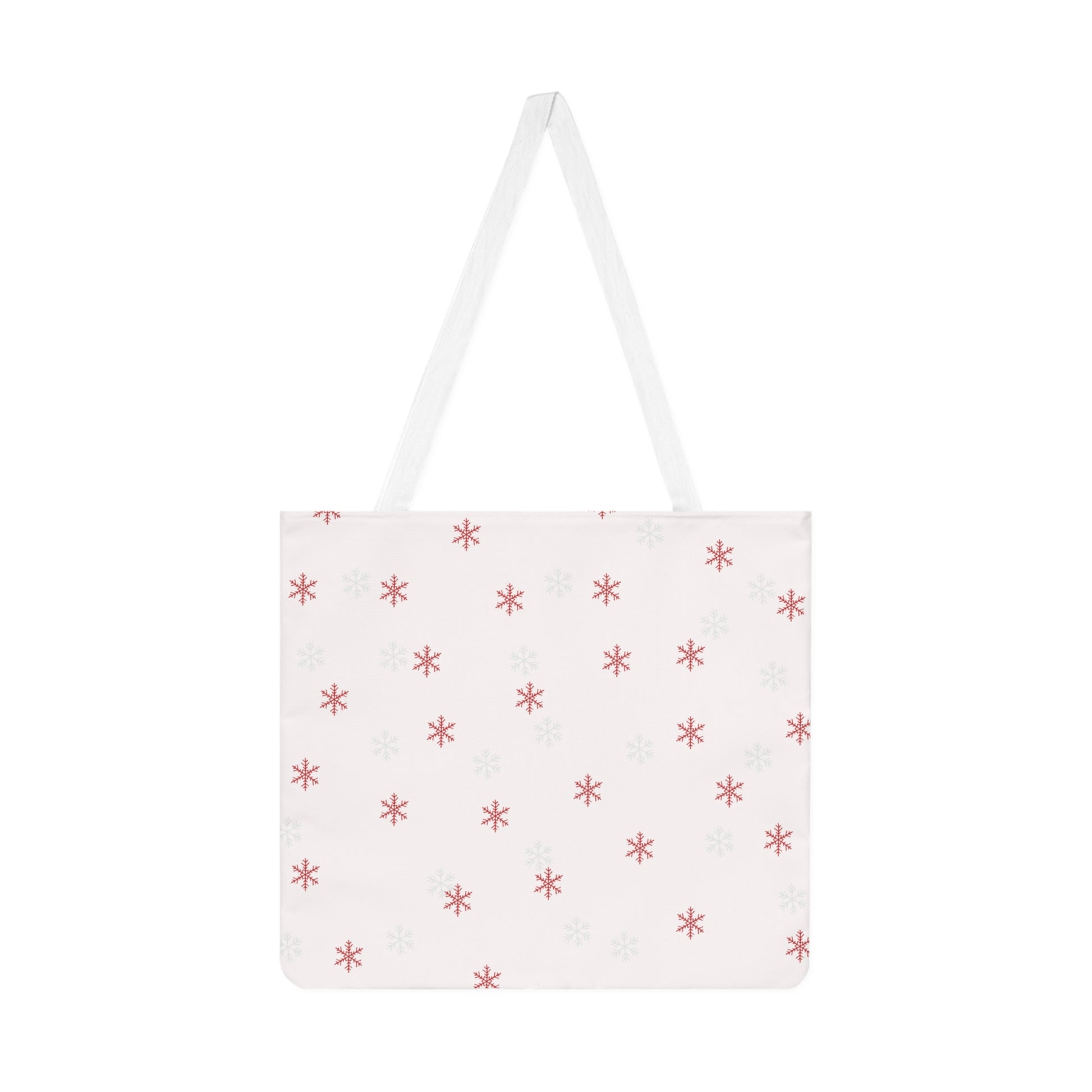 Carry a soft, cozy mood with this Christmas-themed shoulder tote. The all-over print shows a watercolor-style gift sack brimming with candy canes and tiny wrapped treats, framed by delicate snowflakes and the warm script “CHRISTMAS TREATS.” Lightweight and made from 100% cotton, the bag feels lived-in and gentle to the touch. Long white handles sit comfortably on the shoulder; reinforced stitching at the seams gives extra confidence when you fill it with market finds, holiday baking, or cozy gifts. The muted red-and-cream palette keeps the look quiet and charming — it feels like a small, handmade moment you can take with you through winter errands, festive baking days, and the slow, twinkling evenings of the season.