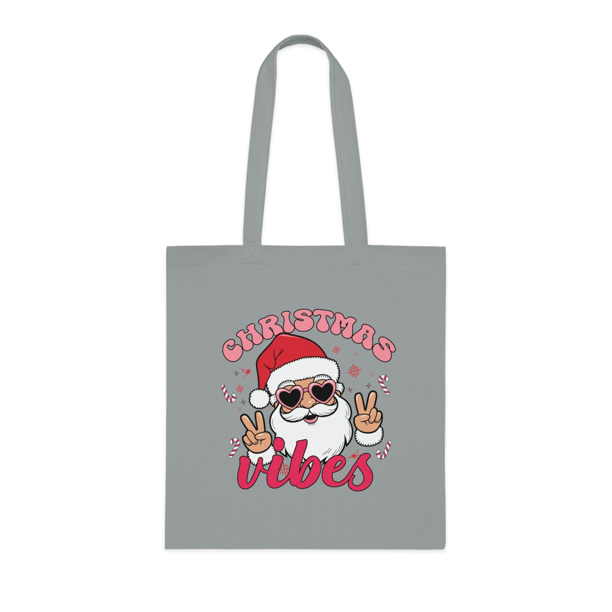 Christmas Vibes Cotton Tote Bag — Santa Peace Sign Holiday Market Tote